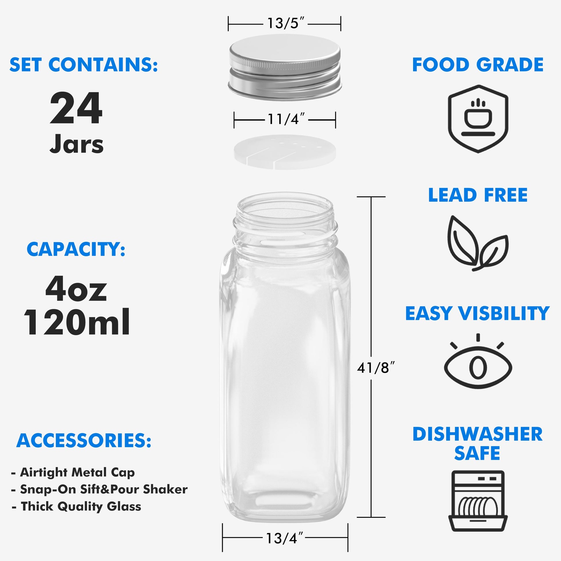 Premium glass jars: Made from high quality, durable clear glass for easy visibility of your spices.