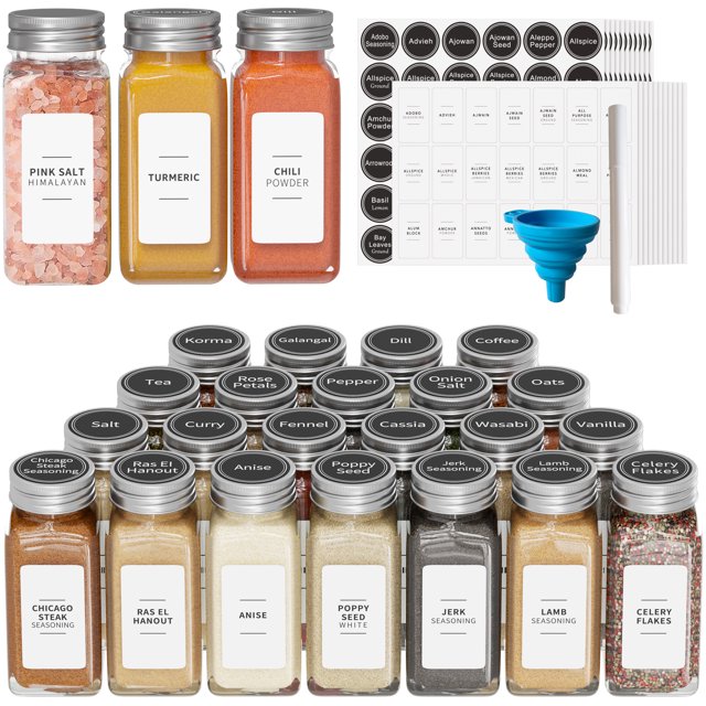 Tooloton 24 Pcs Spice Jars, 374 Spice labels, 386 Round Labels, 1 Collapsible Funnel and 1 Pen